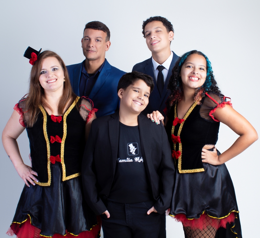 A mágica entrou em minha vida como um sonho de infância e, com o tempo, transformou-se em uma verdadeira paixão. O que eu não poderia imaginar é que esse encanto se tornaria ainda maior quando passou a ser compartilhado com aqueles que mais amo: minha esposa Elizabeth, minha filha Anna, meu filho Heron e o caçulinha Thomas. Juntos, formamos a Família Mágica, um projeto que une diversão, emoção e, acima de tudo, amor. Cada um de nós contribui com sua alegria, criatividade e energia para transformar o espetáculo em algo único e inesquecível!